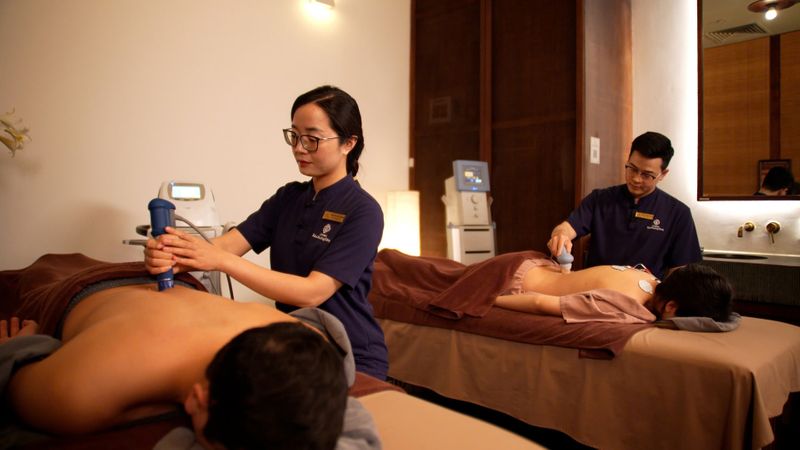 Tại Vinmec Sao Phương Đông ứng dụng các thiết bị hiện đại như máy điện xung, laser, siêu âm trị liệu và máy xung kích, mang đến giải pháp tối ưu cho sức khỏe. Các công nghệ này hỗ trợ kích thích cơ bắp, giảm đau, tái tạo mô, giảm viêm và điều trị hiệu quả các bệnh lý mãn tính như viêm gân, gai xương. Mỗi liệu trình được thiết kế chuyên biệt, giúp cải thiện vận động, thúc đẩy phục hồi và nâng cao chất lượng cuộc sống.